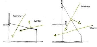 Planung eines Wintergartens Beginnend mit der Bedarfsfeststellung wird Nutzung und Funktion festgelegt. Eng anliegende Wintergärten am Kernhaus bringen Energiegewinne und Speicherung. Bevorzugte Lagen sind je nach Nutzung & Aufenthalt Südosten und Südwesten. Bei der Konstruktion haben Sie die Wahl zw. Stahl, Plastik und Brettschichtholz. Die Verglasung sollte aus Wärmeschutzverglasung (k-Wert= 1,3) bestehen. Vermeidung von Überhitzung oder was bringt Ihnen ein Wintergarten der von Jalousien verdunkelt wird ? Wichtigster Punkt ist die Geometrie. Der Wintergarten sollte ausreichend hoch und über ein steiles Dach verfügen. Im Idealfall an zwei Geschossen des Kernhauses anschließen. Bei niedrigen Traufhöhen kann man ihn ein Stück eingraben. Zur Speicherung sollte ein massiver Fussboden eingebaut werden. Idealerweise ist die Lüftung über Zuluft vom Kermhaus und Abluftklappen über die Dachschräge des Glasanbaus sicherzustellen. Eine Abtrennung mit Tür zw. Glashaus und Kernhaus gibt dem Nutzer die Möglichkeit zu bestimmen, ob eine Erwärmung der Raumlufttemperatur im Gebäudeinneren erfolgen soll. Um die Wohnqualität im Wintergarten sicherzustellen ist die Reduzierung der sommerlichen Wärmelast notwendig. Eine Berechnung zum sommerlichen Wärmeschutz hilft Ihnen weiter. Ich, als Ihr Energieberater, berate Sie dazu gern: